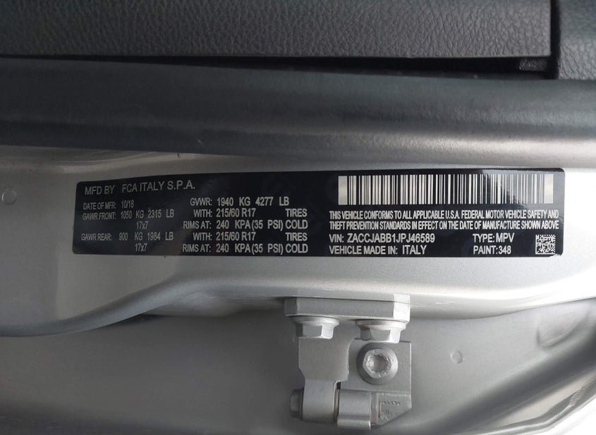 - VIN: ZACCJABB1JPJ46589