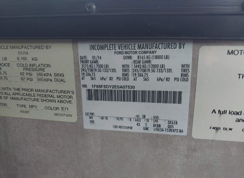- VIN: 1F65F5DY2E0A07530