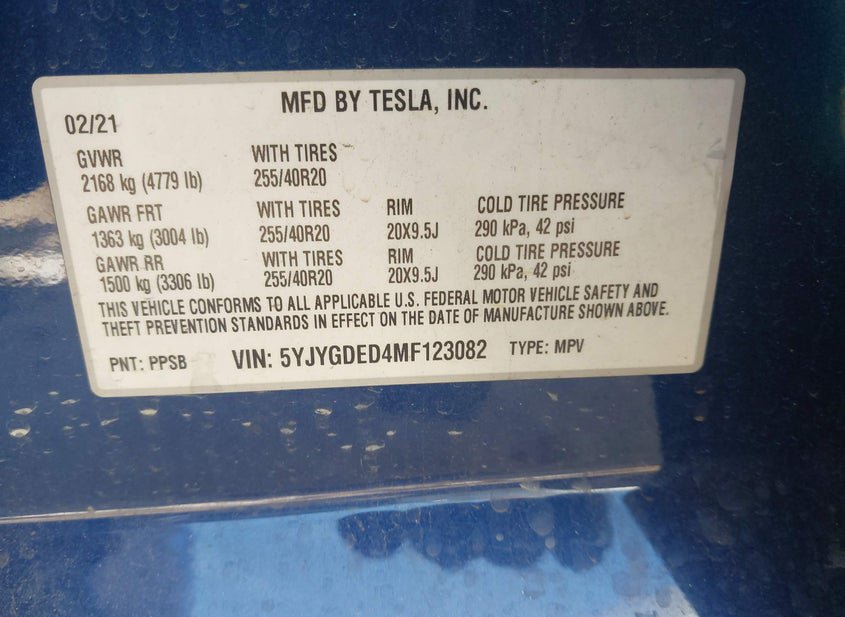 - VIN: 5YJYGDED4MF123082