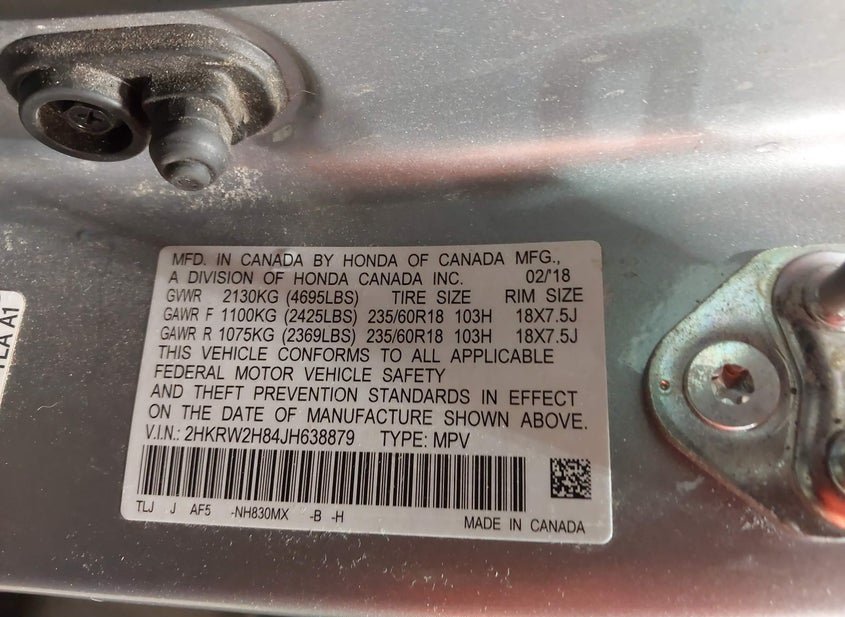 - VIN: 2HKRW2H84JH638879