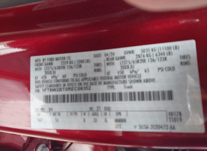 - VIN: 1FT8W2BT0REC08352