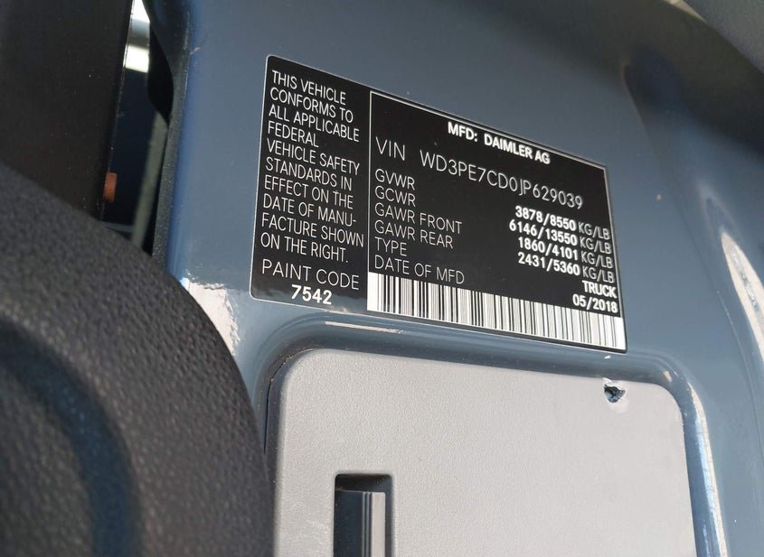 - VIN: WD3PE7CD0JP629039