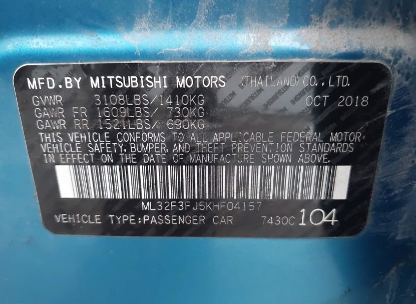 - Название лота: 2019 MITSUBISHI MIRAGE G4 ES