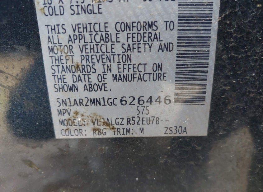 - VIN: 5N1AR2MN1GC626446