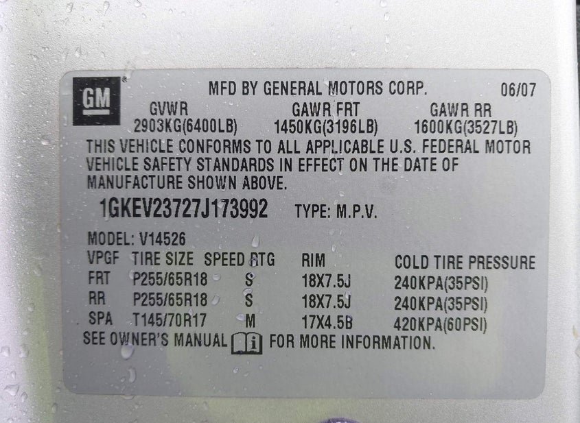 - VIN: 1GKEV23727J173992
