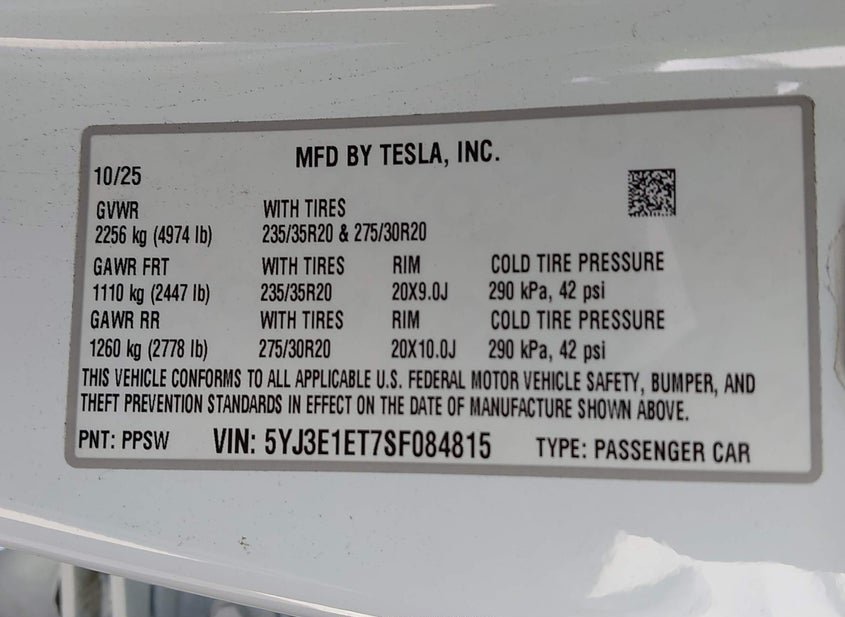 - VIN: 5YJ3E1ET7SF084815
