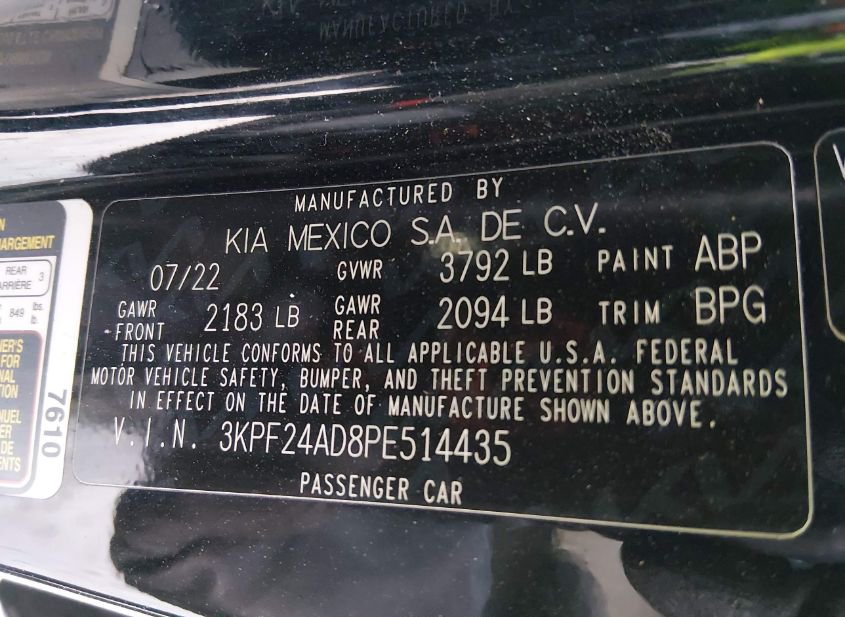 - VIN: 3KPF24AD8PE514435