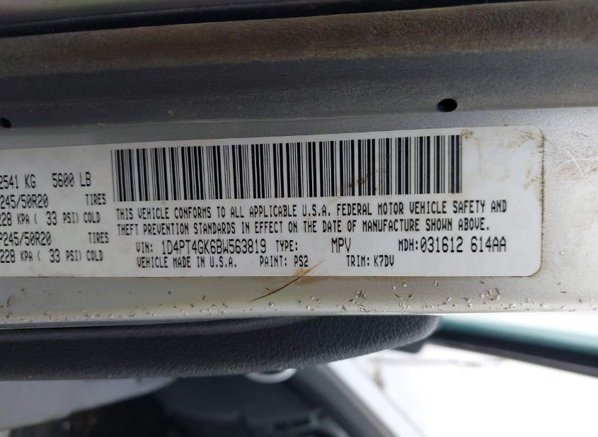 - VIN: 1D4PT4GK6BW563819