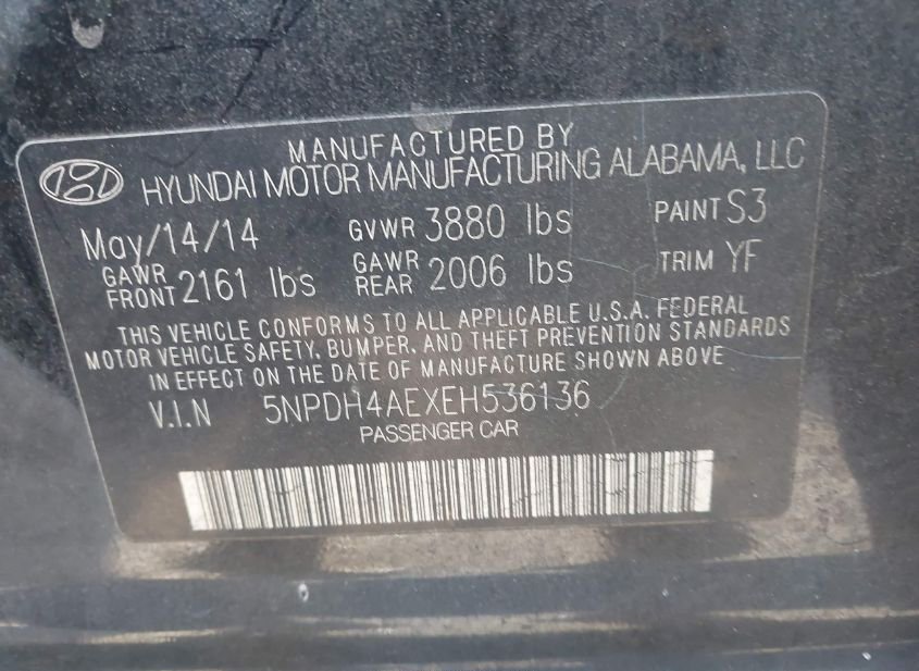 - VIN: 5NPDH4AEXEH536136