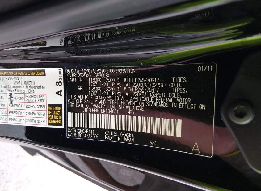 - VIN: JTEBU4BF1BK104831