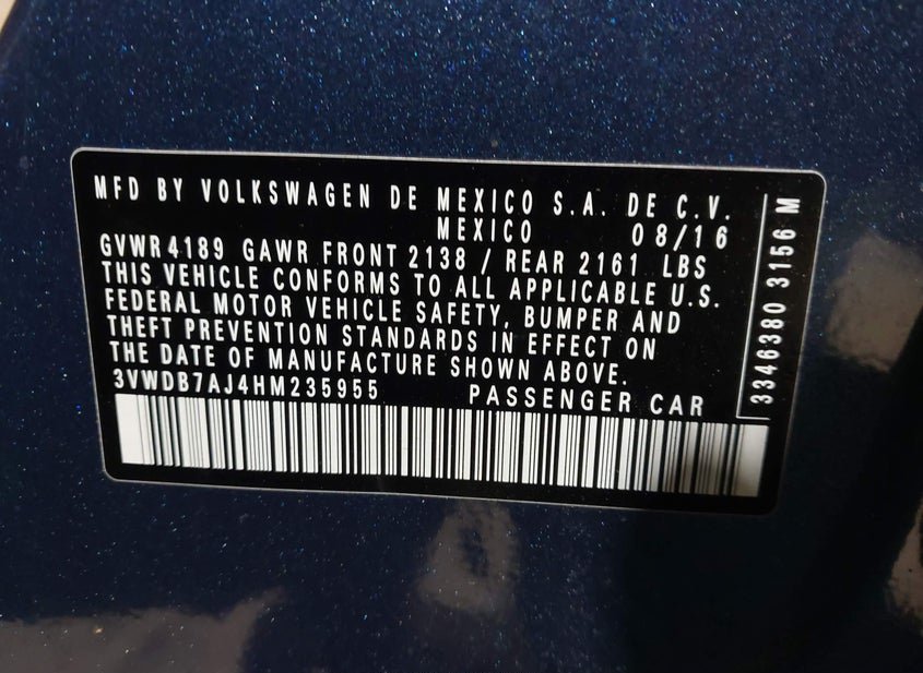 - VIN: 3VWDB7AJ4HM235955