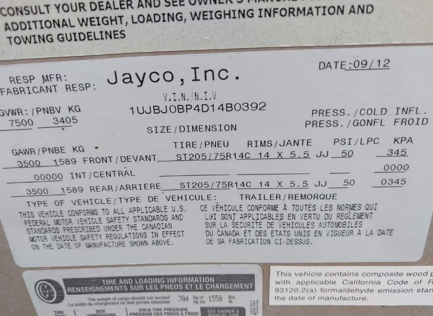 - VIN: 1UJBJ0BP4D14B0392