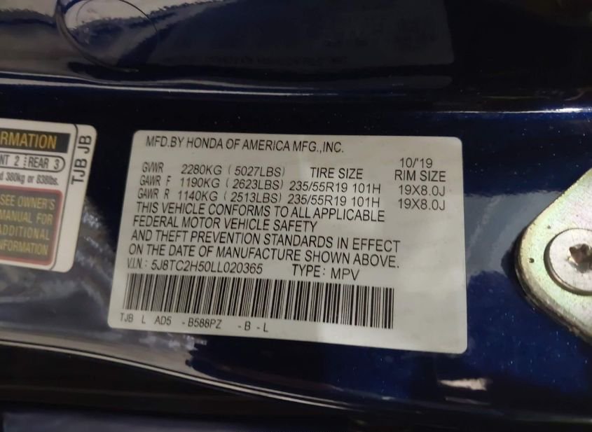 - VIN: 5J8TC2H50LL020365