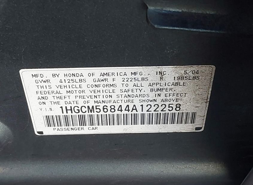 - VIN: 1HGCM56844A122258