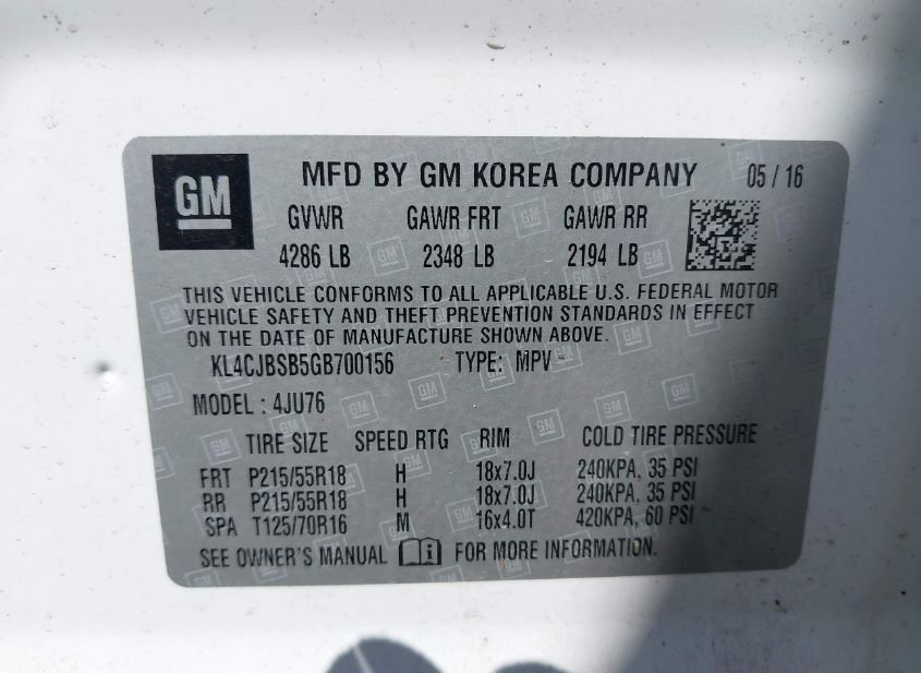 - VIN: KL4CJBSB5GB700156