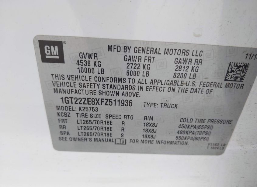 - VIN: 1GT22ZE8XFZ511936