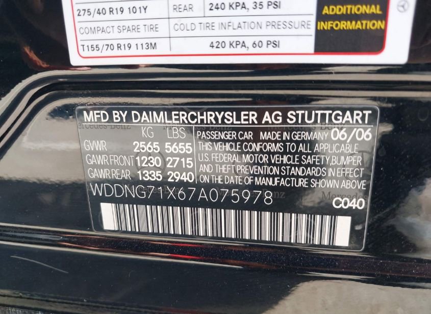 - VIN: WDDNG71X67A075978