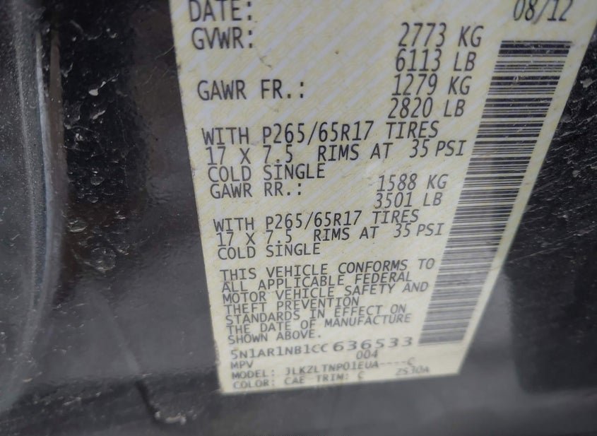 - VIN: 5N1AR1NB1CC636533