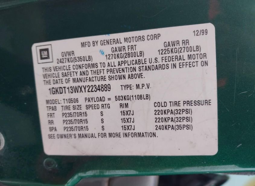 - VIN: 1GKDT13WXY2234889