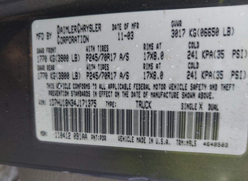 - VIN: 1D7HU18N34J171375