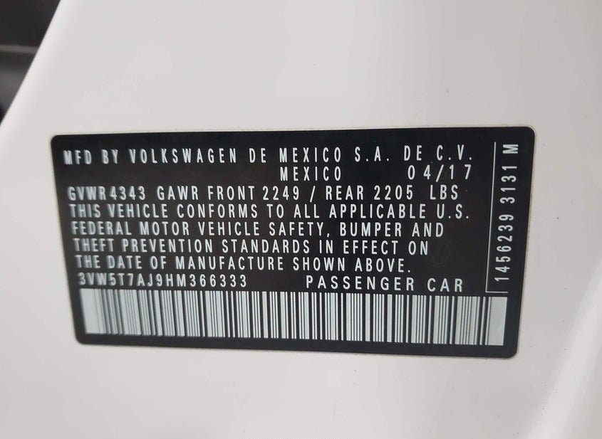 - VIN: 3VW5T7AJ9HM366333