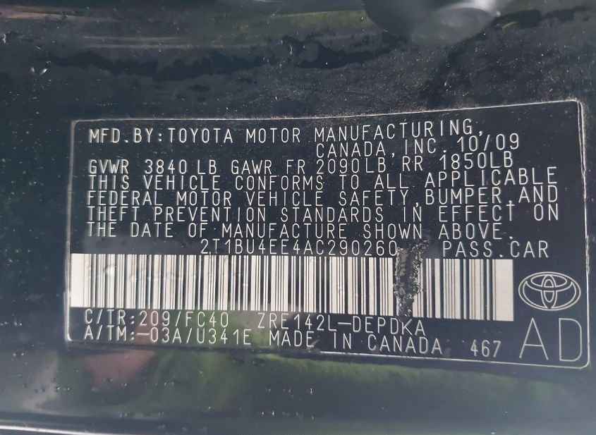 - VIN: 2T1BU4EE4AC290260