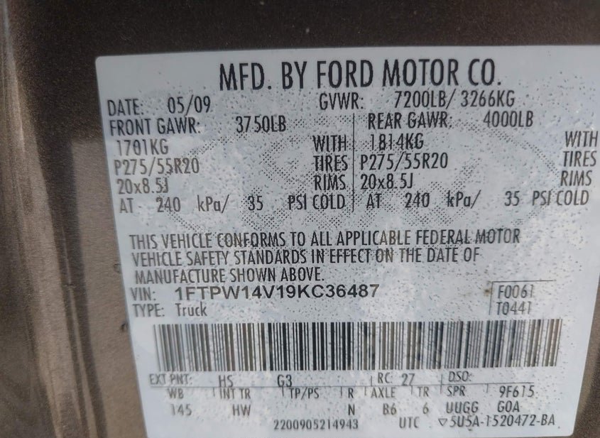 - VIN: 1FTPW14V19KC36487