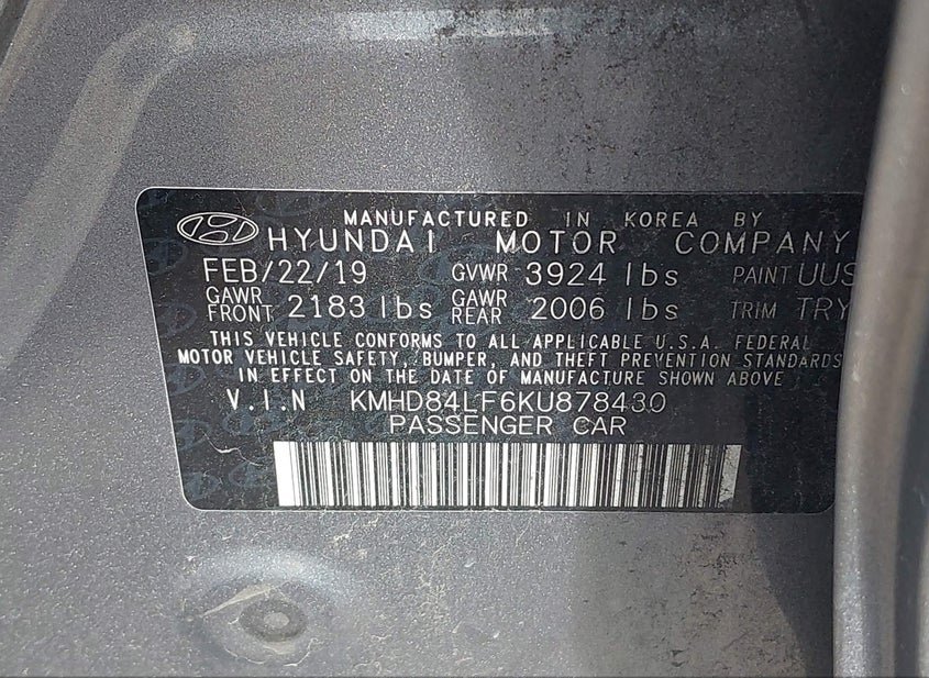 - VIN: KMHD84LF6KU878430
