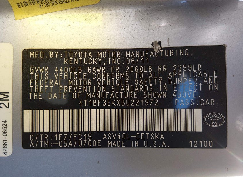 - VIN: 4T1BF3EKXBU221972