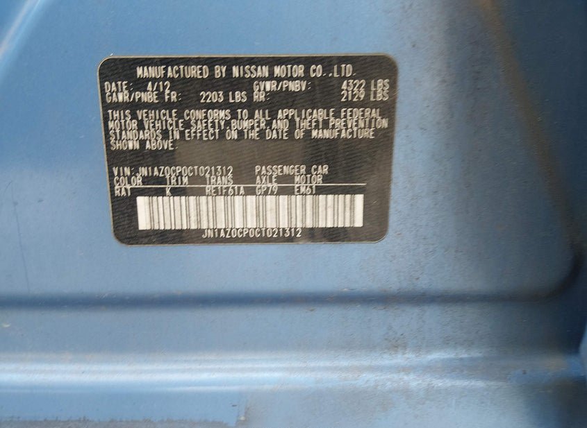 - VIN: JN1AZ0CP0CT021312