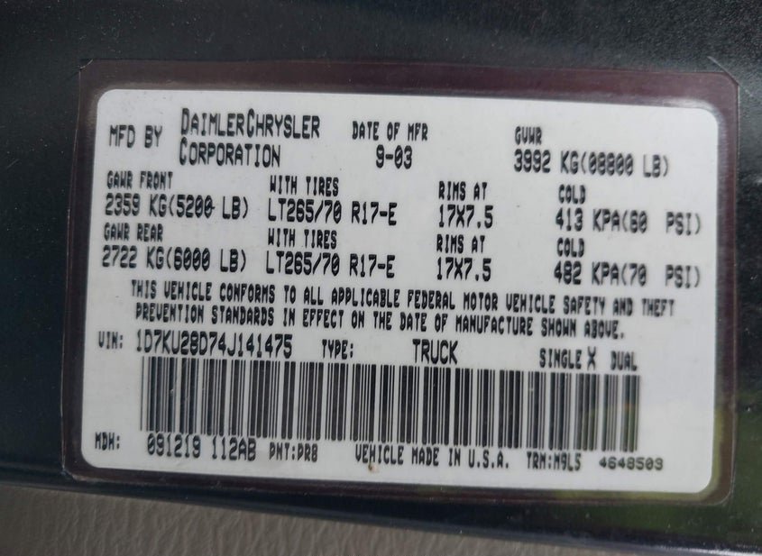 - VIN: 1D7KU28D74J141475