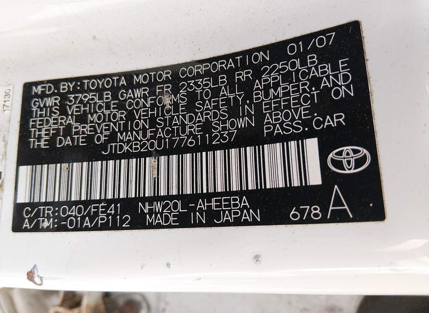 - VIN: JTDKB20U177611237