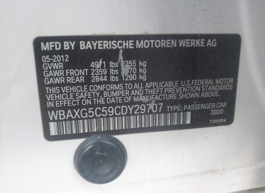 - VIN: WBAXG5C59CDY29707