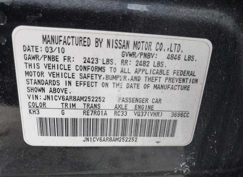 - VIN: JN1CV6AR8AM252252
