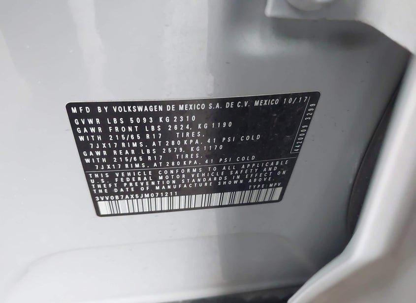 - VIN: 3VV0B7AX5JM071211