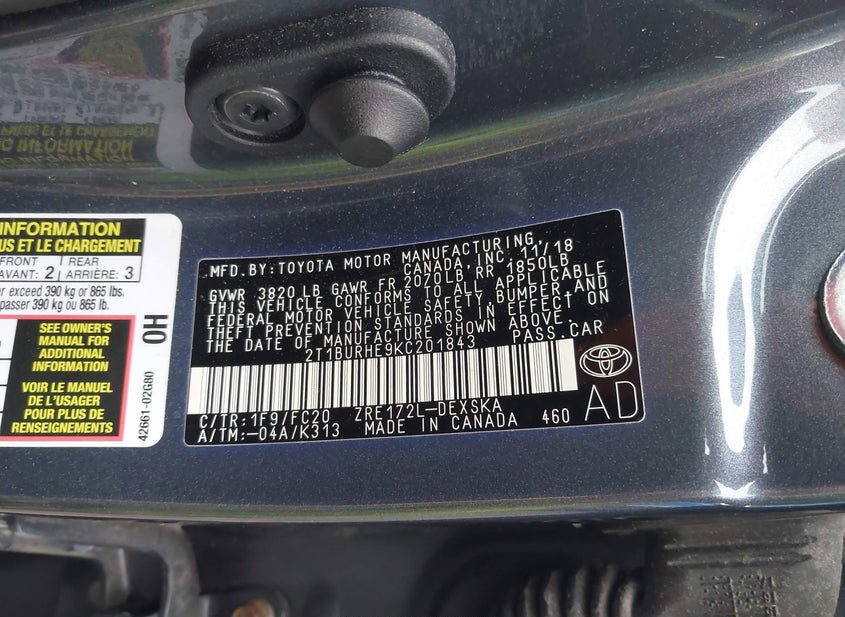 - VIN: 2T1BURHE9KC201843