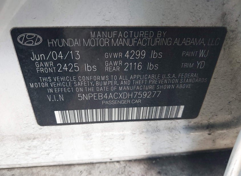 - VIN: 5NPEB4ACXDH759277