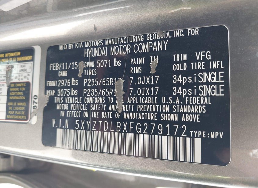 - VIN: 5XYZTDLBXFG279172