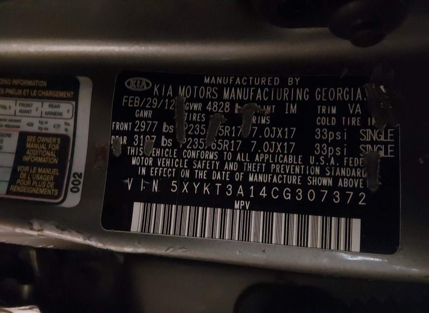 - VIN: 5XYKT3A14CG307372