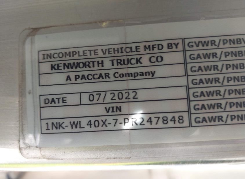 - VIN: 1NKWL40X7PR247848