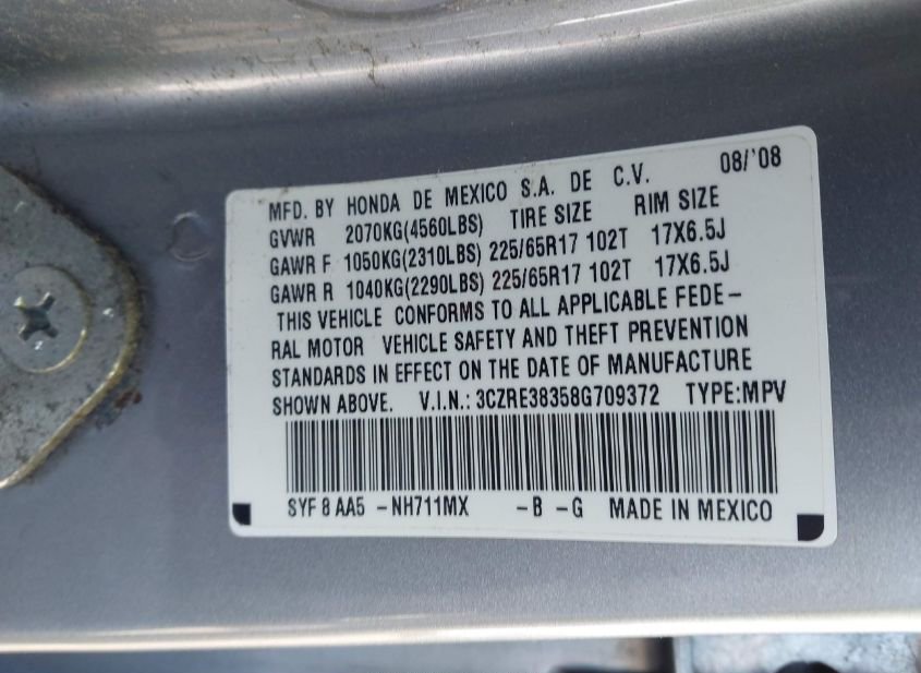 - VIN: 3CZRE38358G709372