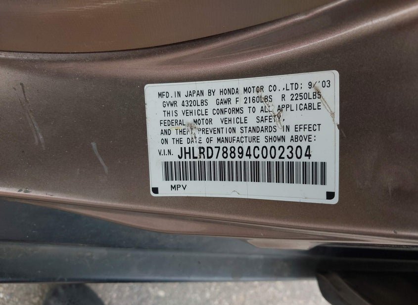 - VIN: JHLRD78894C002304