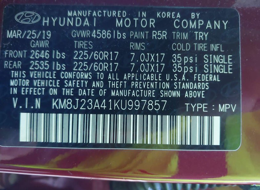 - VIN: KM8J23A41KU997857