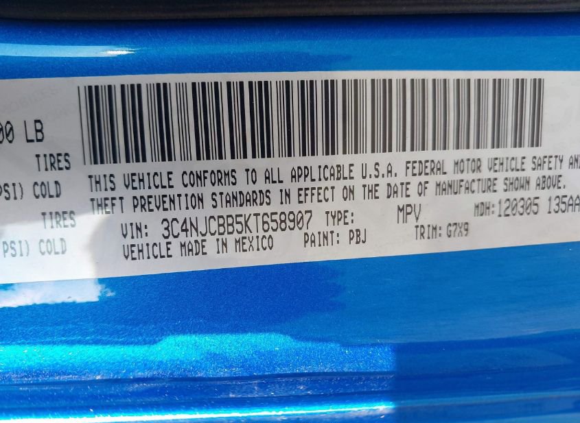 - VIN: 3C4NJCBB5KT658907