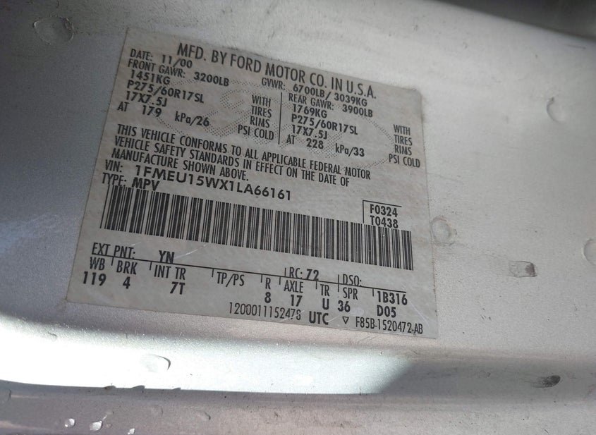 - VIN: 1FMEU15WX1LA66161