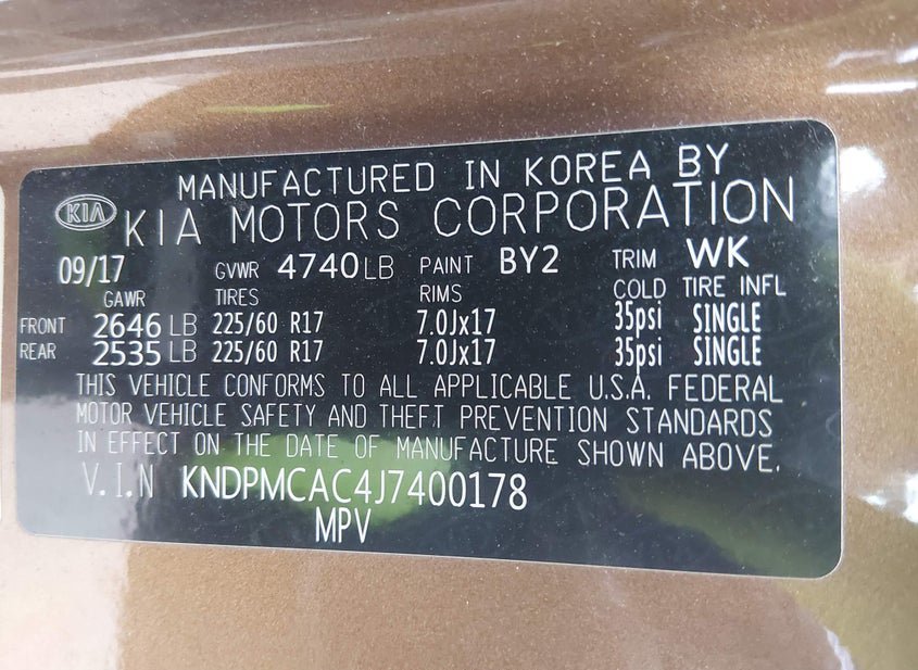 - VIN: KNDPMCAC4J7400178