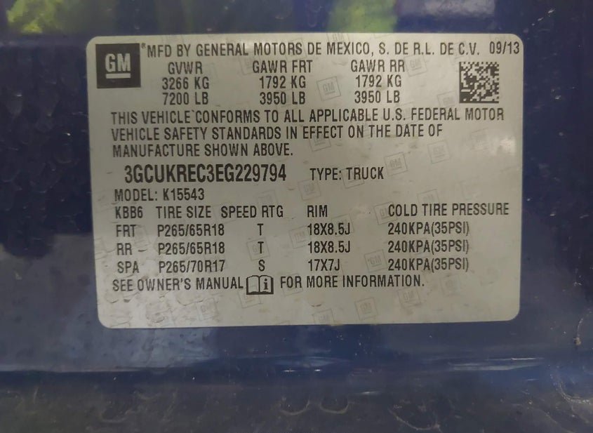 - VIN: 3GCUKREC3EG229794