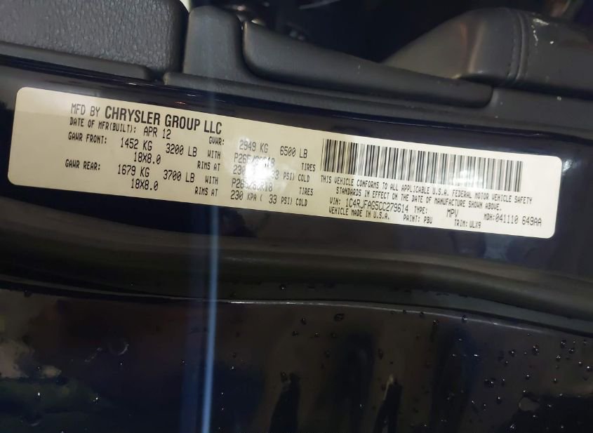 - VIN: 1C4RJFAG5CC279614