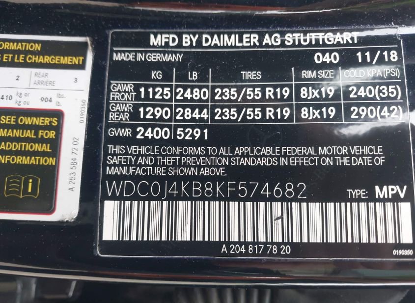 - VIN: WDC0J4KB8KF574682