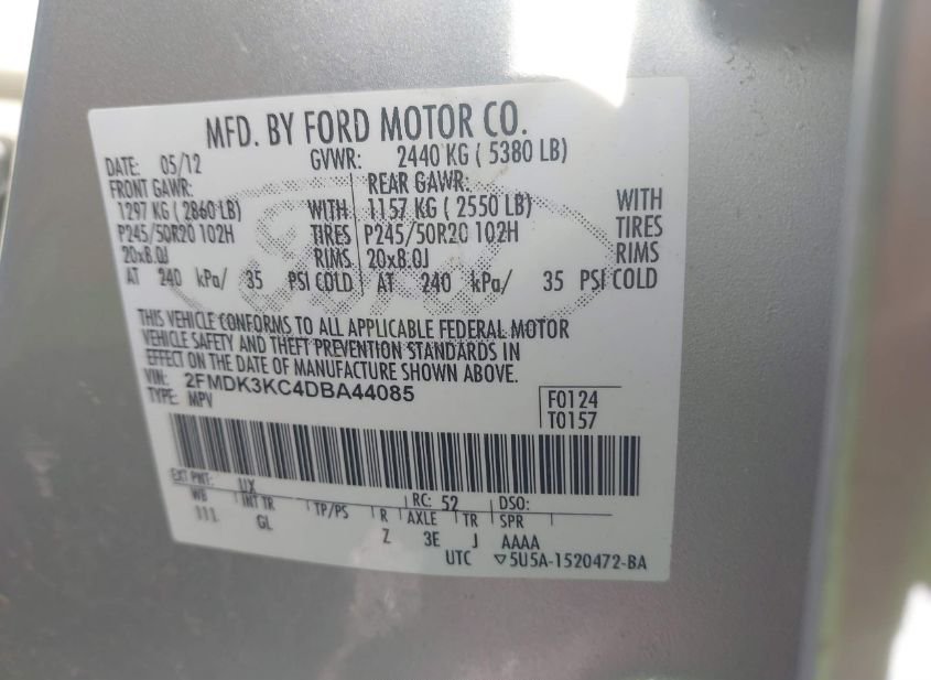 - VIN: 2FMDK3KC4DBA44085